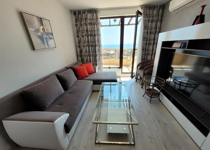 Offering a private swimming pool and a terrace, the spacious 68 m² Millenium II B34 Apartment Sveti Vlas is situated in the Yurta district, nearly a 10-minute ride from Den Glade Viking Dance Club. Church of Saint Sophia is located within a 6-km distance of the 1-bedroom apartment.